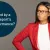 A professional headshot of a woman with short blonde hair, smiling, wearing earrings against a blurred neutral background.